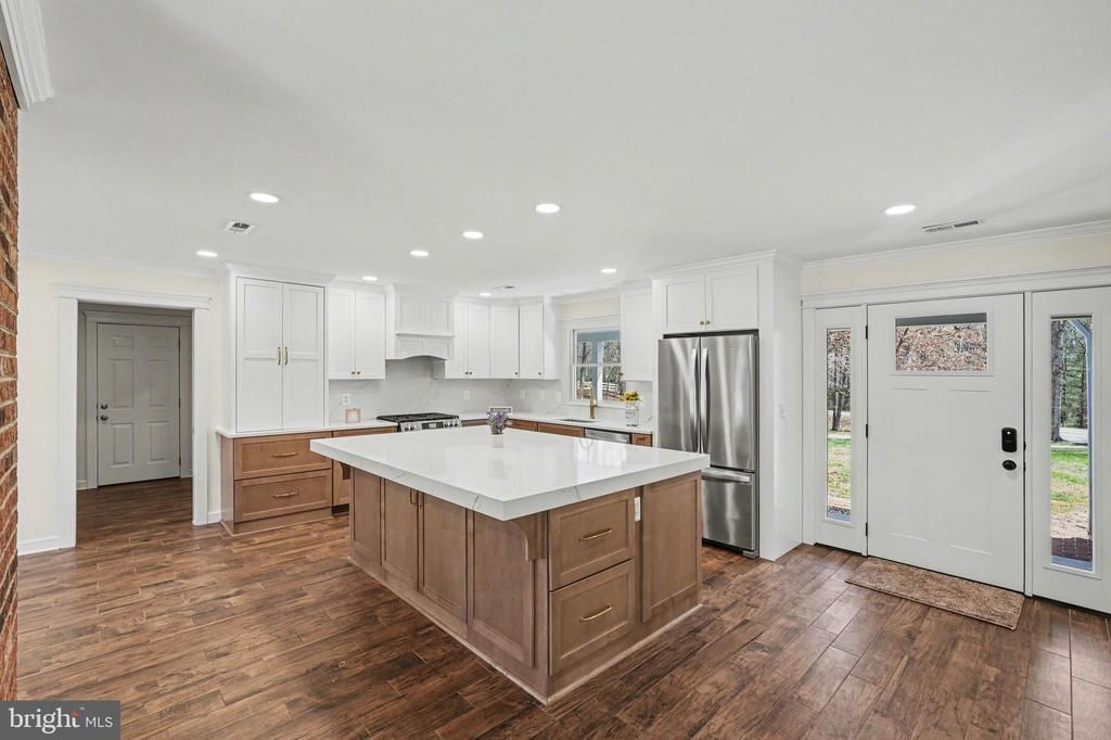 Enjoy peaceful country living just minutes from town! This beautifully maintained and extensively upgraded 3-bedroom, 2-bath one-level home sits on approximately 2 acres in Culpeper County, offering space, privacy, and convenience. Inside you’ll find a spacious living room featuring a wood-burning fireplace with a new high-efficiency insert and insulated stainless steel flue, a formal dining room, and a completely remodeled kitchen designed for both style and functionality. The kitchen includes quartz countertops, a large quartz island with additional structural support, quartz backsplash, semi-custom wood cabinetry with Rejuvenation hardware, under-cabinet lighting, farm-style stainless steel sink, stainless steel appliances, garbage disposal, and a hood range vented to the exterior. A separate butler’s pantry adds even more convenience with a second farm-style sink, additional dishwasher, and garbage disposal. The home features a private primary suite along with two additional bedrooms. Both bathrooms have been fully remodeled with moisture-resistant drywall and quiet exterior-venting fans. Additional interior highlights include a dedicated office with sound-reducing exterior-rated door, separate laundry/mudroom with shop sink, and included Speed Queen washer and dryer plus an additional refrigerator/freezer. Quality upgrades throughout the home include Andersen windows throughout the house and garage (except two small office windows), ProVia exterior doors and sliding glass door, custom milled interior wood doors with colonial trim, whole-house crown molding, wood grain ceramic tile flooring throughout most of the home, and extensive adjustable recessed lighting. The entire HVAC system has been replaced with a Trane heat pump and air conditioning system along with all new ductwork installed to current code. Major structural and efficiency improvements include a new roof, new siding with plywood underlayment and fascia, upgraded R15 wall insulation, R60 blown-in attic insulation with vent guards, new 5-inch gutters routed into underground drainage, and a fully encapsulated crawlspace with drainage mat, sump pump, and dehumidifier under warranty through 2030. The home also features a whole-house RainSoft water treatment system. Home Includes 1000 gallon buried propane tank for oven and cook top which conveys to new owner. Outdoor living is just as impressive with a fully paved driveway offering 5–6 parking spaces, an oversized 2-car garage with insulated door and LiftMaster opener, and an expansive 985-square-foot bluestone patio and walkway perfect for entertaining or relaxing. The property also includes fenced areas and multiple outbuildings, offering excellent potential for animals, hobbies, or additional storage. Located in a quiet rural setting while still being just minutes from downtown Culpeper, this property offers the best of country living with convenient access to shopping, dining, and commuting routes.