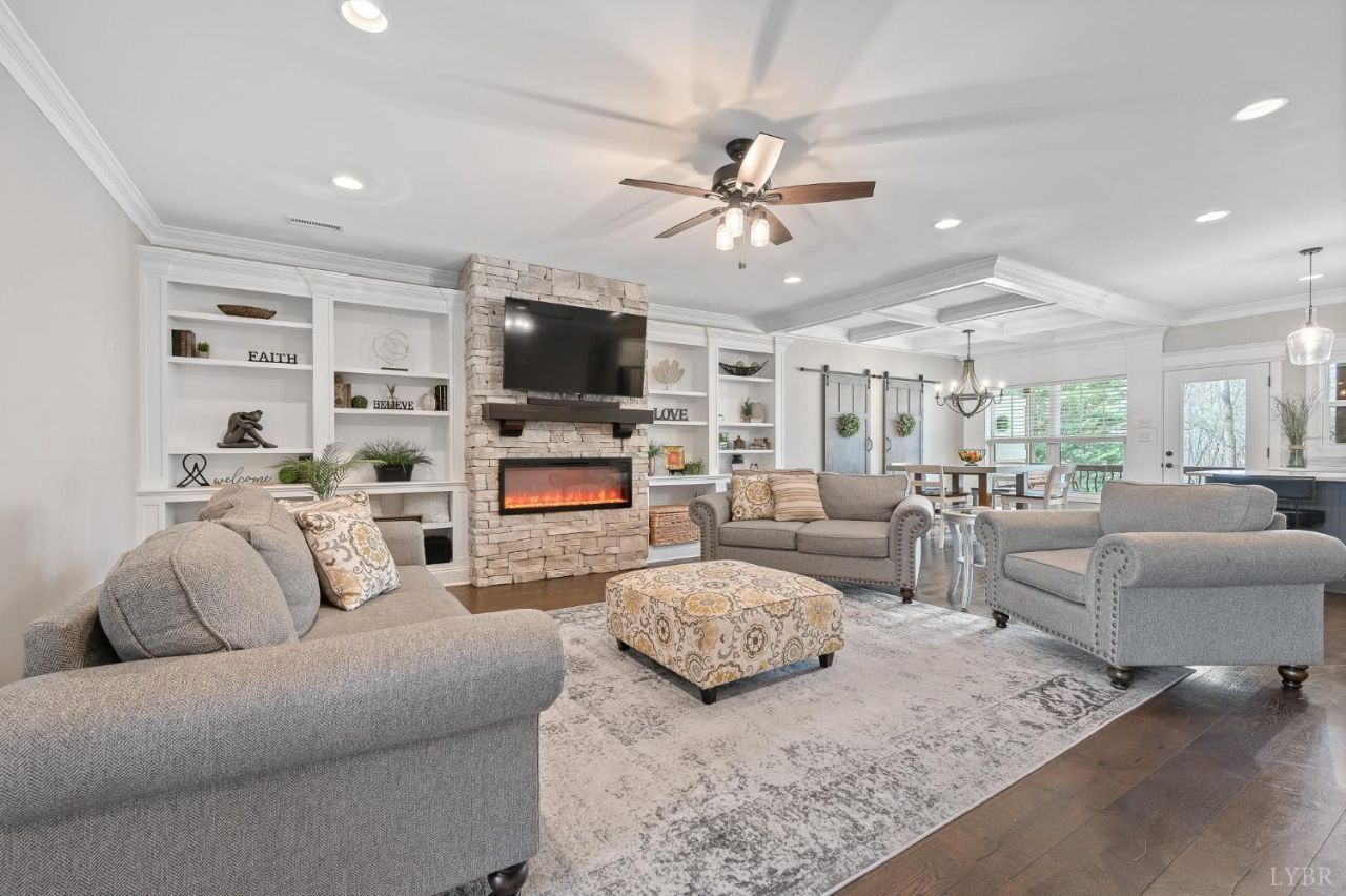 Three levels of living in Forest's Sleepy Oaks community, and the finished basement sets this townhome apart from anything on the market. The lower level features its own kitchenette with full-size refrigerator, dishwasher, and microwave, plus a bedroom, full bath with tiled shower, separate laundry, and a mini split for independent climate control. Guest suite, in-law space, or rental income - your call. The main level delivers an open great room with stone fireplace, custom built-ins, and hardwoods flowing into a kitchen with marble countertops, island seating, and marble backsplash. The primary suite features a tray ceiling, large walk-in closet, and en suite with double vanities and tiled shower. Two additional bedrooms, full bath, & laundry complete the upper level. Covered deck, one-car garage, all brick and stone exterior. HOA covers exterior maintenance, grounds, & trash. Bedford County taxes and schools, minutes to Lynchburg shopping & dining. Schedule your private tour today!