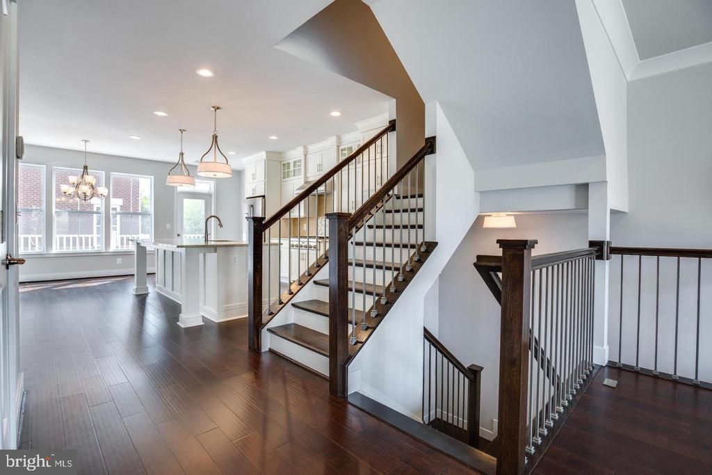 Four-level townhouse in a prime Reston location offering 4 bedrooms and 4.5 baths with 9-foot ceilings throughout. The kitchen features stainless steel appliances, granite countertops, a custom backsplash, and an oversized island with seating and balcony access. The living room includes a custom fireplace and a Juliet balcony. The primary suite offers walk-in closets and a private bath. An entry-level bedroom with a full bath provides flexible living options, along with a rooftop deck. Conveniently located near the Metro, Reston Town Center, Dulles Toll Road, and major commuter routes.