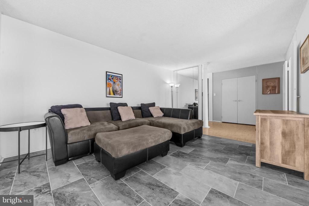 *** DECORATOR ALLOWANCE NEGOTIABLE AS CLOSING COST CREDIT *** Sought after, upper level CORNER UNIT on the quiet side of the building! Spacious 2 BR/2 BA Templeton condo has sweeping views of the Alexandria skyline - all the way to the Masonic Temple. Two-sided wraparound balcony for admiring the plush tree canopy for miles into the distance changing colors with every season. Note the custom privacy wall upon entering, adding intimacy in the living space from the hallway. Elegant new ceramic tile floors throughout living and dining areas. Sunshine pours in through floor to ceiling windows to bathe every room in abundant natural light. The large primary suite can comfortably fit a king bed and offers a walk-in closet and ensuite BA. The secondary BR can be a guest room/home office. Plenty of closets and storage! Washer and dryer in unit! Garage space #37 conveys along with a parking pass for one unassigned spot in the parking lot. A storage unit in the basement houses luggage and seasonal decorations. Condo fee includes all utilities except electric and cable. Templeton is a pet friendly community and is well managed with secure access and on-site management Mon - Fri. Amenities include a party room, an outdoor pool with a large lounge area and bathhouse, basketball court, tennis court, tot lot, and terraces for picnics and grilling surrounded by lovely manicured grounds. Close to both Van Dorn Station Shopping Center and Van Dorn Plaza for groceries, drug store, pet store and diverse dining options. Located minutes from Eisenhower Ave Metro Station and the new INOVA hospital complex. Accessible to I-395 and 495 for a quick commute to the Pentagon, Amazon HQ2, downtown DC, Old Town Alexandria and Reagan National Airport.