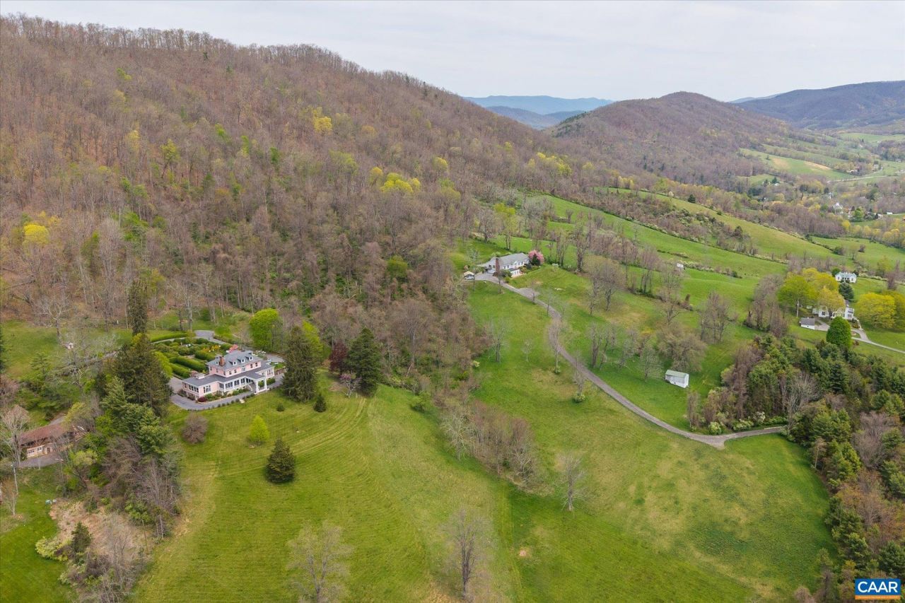 Perched atop scenic Routier Hill with commanding views of the valley, Roseloe Manor is a timeless jewel in the heart of Hot Springs, Virginia. Built in 1905 and expanded in 1918, this stately residence was once the centerpiece of a 126-acre estate and a wartime haven of a Baron and Baroness. Today, Roseloe Manor rests on 12 enchanting acres, graced by a formal boxwood and rhododendron garden that reflect its storied past. A comprehensive restoration has seamlessly blended historic charm with modern comfort, preserving exquisite details like a dramatic 9-foot stained glass window, carved European mantels, and a sweeping grand staircase. Gracious entertaining spaces include a formal dining room for 16, and a living room with expansive windows that showcase sweeping mountain views. A distinguished covered front porch welcomes guests with classic charm while inside, ornate fireplaces and Victorian craftsmanship define the refined living areas. All bedrooms are upstairs, including a serene primary suite with dressing room and steam shower bath. Just five minutes from the renowned Omni Homestead & Garth Newel Music Center, Roseloe Manor is a rare and exceptional offering nestled in the idyllic natural landscape of Bath County Virginia.