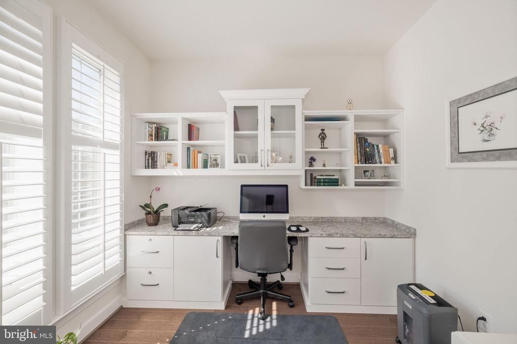 Welcome to 620 Angelfish Way, a gorgeous 3-bedroom 3.5 bath end-unit Galleon model built in 2022 by Miller & Smith near the Belmont Bay waterfront community located just minutes from I-95, VRE and Route 123. This stunning home is in Beacon Park Townes, an over-55 community. It’s got great curb appeal with a partial brick front and side accompanied by handsome Hardie Plank plus a covered front entry and attractive landscaping. There are lots of tasteful upgrades including an elevator that serves all three levels. Beautiful hardwoods are on the steps and the main and upper levels. The many windows and high ceilings on all levels make it light, cheerful and welcoming. You’ll see an elegant modern chandelier plus five windows with plantation shutters in the dining room. The main-level office has built-ins with glass cabinets and shelves, an extra-long countertop and recessed lighting. Your inner chef will love the kitchen with its premium 42-inch cabinetry with brushed nickel hardware, unique tile backsplash, sleek quartz counters, stainless appliances, huge island with chic pendant lights and a double-sink with a swan-neck faucet with pull-down sprayer. To keep all your supplies at hand, there’s a large walk-in pantry. Off the kitchen is the spacious great room with four windows with plantation shutters, recessed lighting and a classy alcove for a bar/butler’s pantry dressed up with a quartz counter and trendy shelving and storage cabinets. A glass door leads out to the awesome covered screened deck with high ceiling, recessed lights and composite floor - perfect for relaxation or entertaining! A door from the porch steps out to a deck area perfect for grilling with its gas hook-up - no propane needed! Upstairs, both full baths have vanities with stunning leathered granite, floor tile in a subway pattern, refined tilework up to the ceiling and rainforest showerheads in the showers. All 3 bedrooms have closet organizers. The owner’s suite has five windows and a tray ceiling with recessed lighting. For easy convenience the laundry room with LG washer/dryer is also on the upper level. The lower level has a terrific rec room with lots of windows and recessed lighting. It also features a full bath with fashionable finishes and the entrance to the 2-car garage with an upscale custom epoxy floor. From the rec room you can walk out to the nicely landscaped patio and fully-fenced backyard with a curved paver planting bed. This home is a 10!