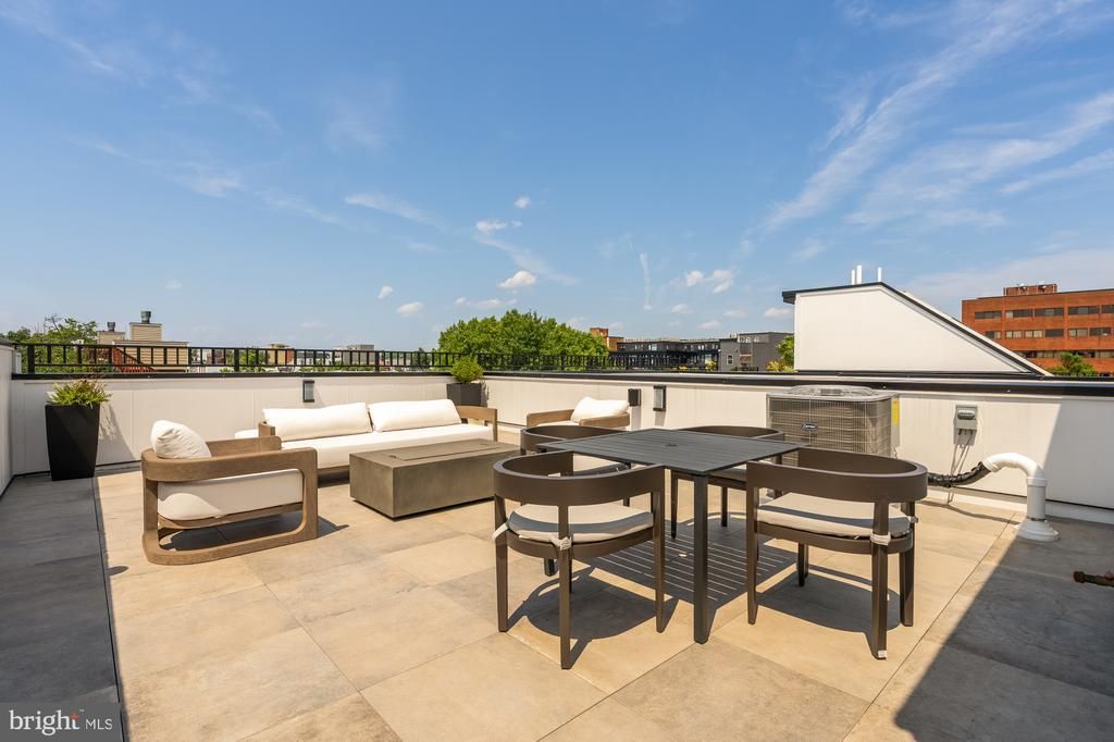 Welcome to Unit 302 at 733 Euclid Street NW, a spectacular two-level penthouse in a meticulously reimagined Second Empire-style landmark. This expansive residence offers four bedrooms, four bathrooms, two glass-enclosed offices, and an impressive 2,952 square feet of living space, thoughtfully designed for both grand entertaining and everyday comfort. At the heart of the home is the high-end Nolte German-designed kitchen, where sleek European aesthetics meet premium functionality. A built-in coffee station, 36-inch industrial Thor range with a pot filler, and Bosch appliances elevate the culinary experience. The family room is designed for seamless entertainment, featuring acoustic panels on the TV wall for enhanced sound quality. Outdoor living is equally impressive. A private patio off the media room creates the perfect retreat, while the primary suite boasts its own balcony for a peaceful escape. Another spacious balcony connects two additional bedrooms, allowing for easy access and extended outdoor enjoyment. The expansive rooftop deck—with fire pits, built-in speakers, and panoramic city views—offers the ultimate space for entertaining or unwinding under the stars. Luxury finishes abound, from custom molding and high-end closets to 9-inch wide wooden flooring, transitioning to elegant herringbone patterns in select areas. The bathrooms feature designer tile and lighting packages, while the laundry room includes built-in cabinetry and a sink for added functionality. Comfort is personalized with multi-zoned HVAC and NEST thermostats throughout. A separately deeded parking space equipped with an EV charger is available for an additional $40,000—an increasingly rare and valuable amenity in the city. Ideally located in the heart of the Pleasant Plains neighborhood, 733 Euclid Street NW offers easy access to Whole Foods, the Columbia Heights Metro, the U Street Corridor, Shaw, and Logan Circle—placing you within walking distance of DC’s best dining, shopping, and cultural hotspots. This is more than a home—it’s a rare opportunity to live in a piece of Washington, DC’s architectural history, artfully transformed for modern luxury living.